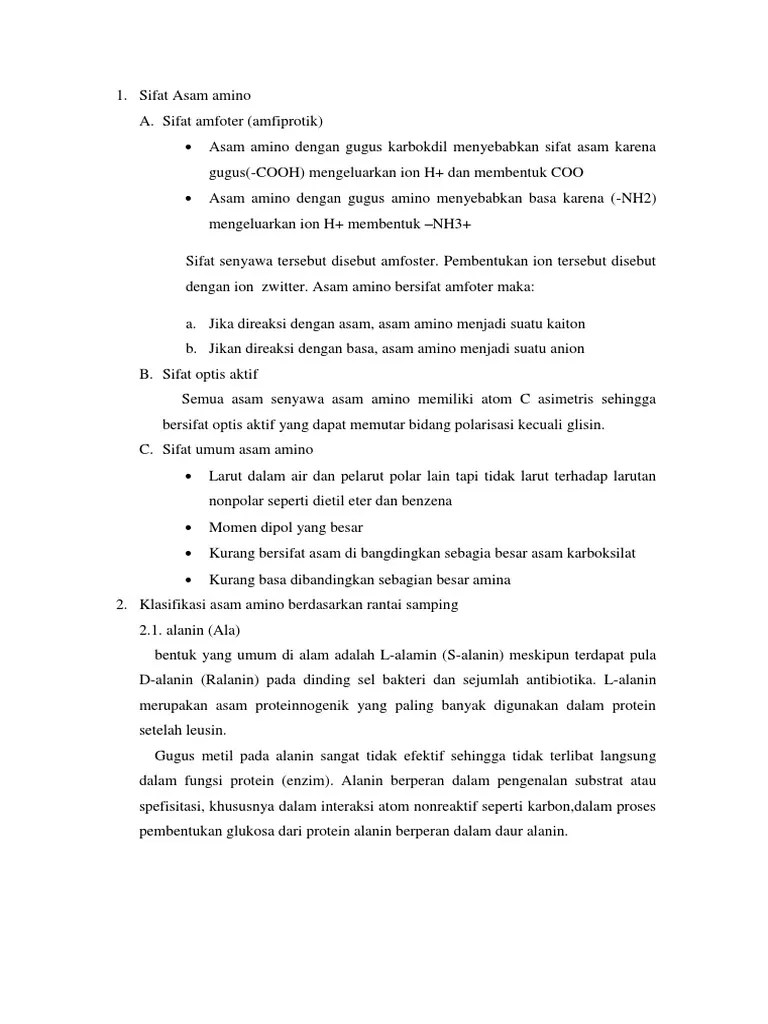 Sifat sifat asam amino diantaranya adalah. Setiap molekul asam amino mengandung setidaknya satu gugus amino (nh2) dan paling sedikit mempunyai satu gugus karboksil (cooh). Oleh karena itu, asam amino dapat bereaksi dengan asam ataupun basa (amfoter). Asam amino memiliki gugus fungsi karboksil yang bersifat asam dan amina yang bersifat basa. 22/11/2021 · asam amino merupakan jenis gizi yang penting dan bagi tubuh manusia.